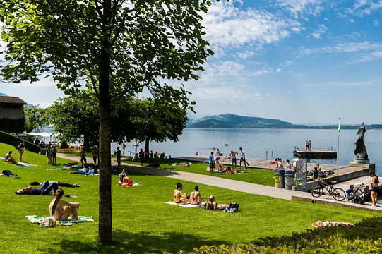 Das grösste Freibad der Stadt Zug mit aufgeschüttetem Sandstrand ist ein Familienbad, das sich für den längeren Aufenthalt eignet.